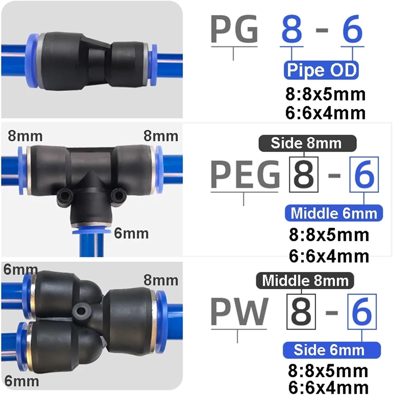 Ferrule FittingsSpecification:Type:Hose to HoseConnector Type: 4mm,6mm,8mm 10mm,12mm,14mm 16mm OD HoseDesign:Straight,Y Shape ,3 WaysType:Air / VacuumOperating Pressure: 0~10.2kgf/cm2 (0~1.0Mpa)Negative Pressure: -750mmhg (10 Torr)Operating Temperature Range:0~60CFit For Tube Material: PU / Nylon ,PolyurethaneQuick Fitting Material:PlasticQuick Fitting Color: Black , BluePackage Content:1x Fitting